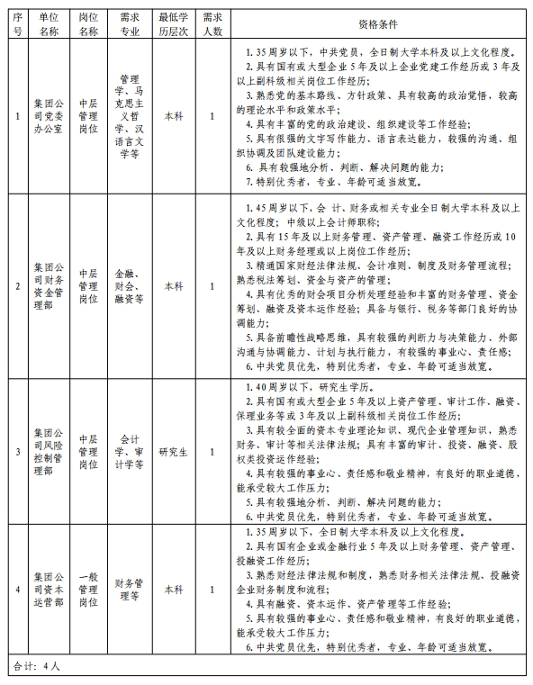 因工作需要,現(xiàn)需社會(huì)化招聘人員4人,現(xiàn)將有關(guān)事項(xiàng)公告如下: